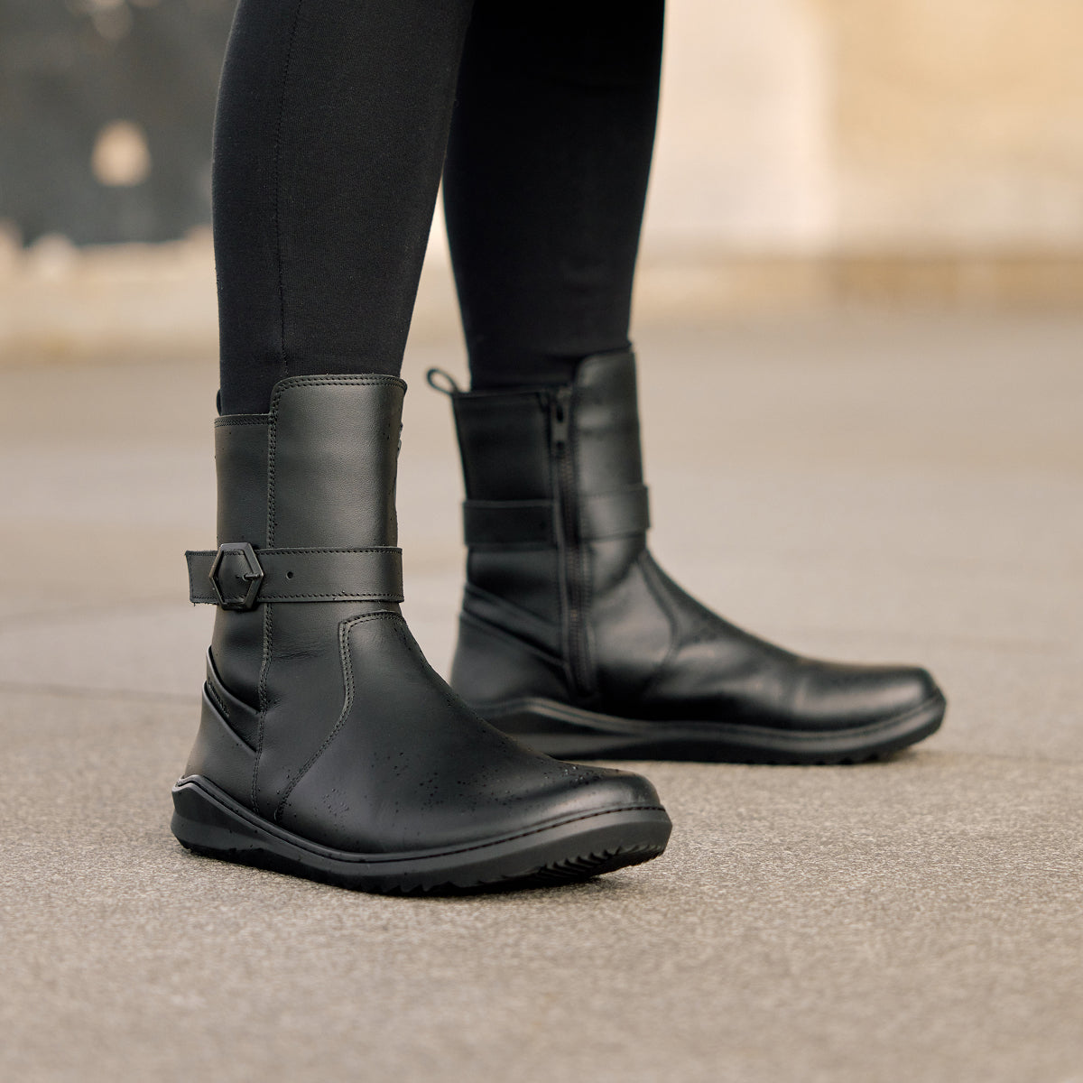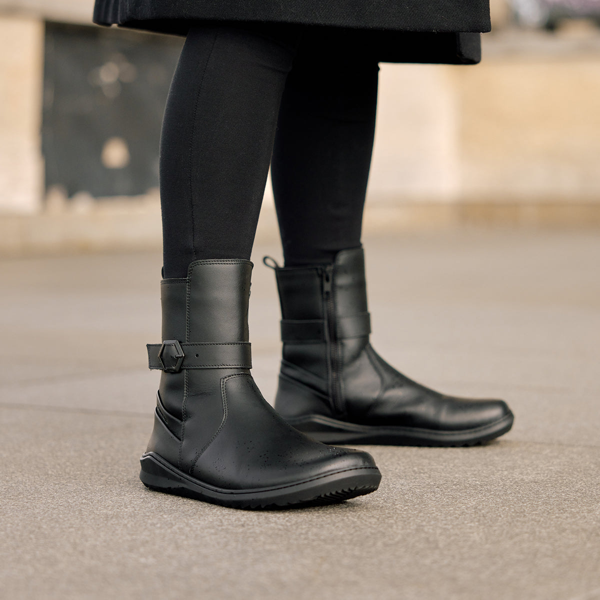 Nocturna are minimalist winter boots designed with modern design trends in mind, combined with enhanced thermal comfort. Made from smooth bovine leather with a water-repellent finish, they reliably protect against moisture. The inner lining of warm high-pile plush keeps your feet warm even in low temperatures. The improved fit of the boots ensures comfortable support around the instep and ankle.