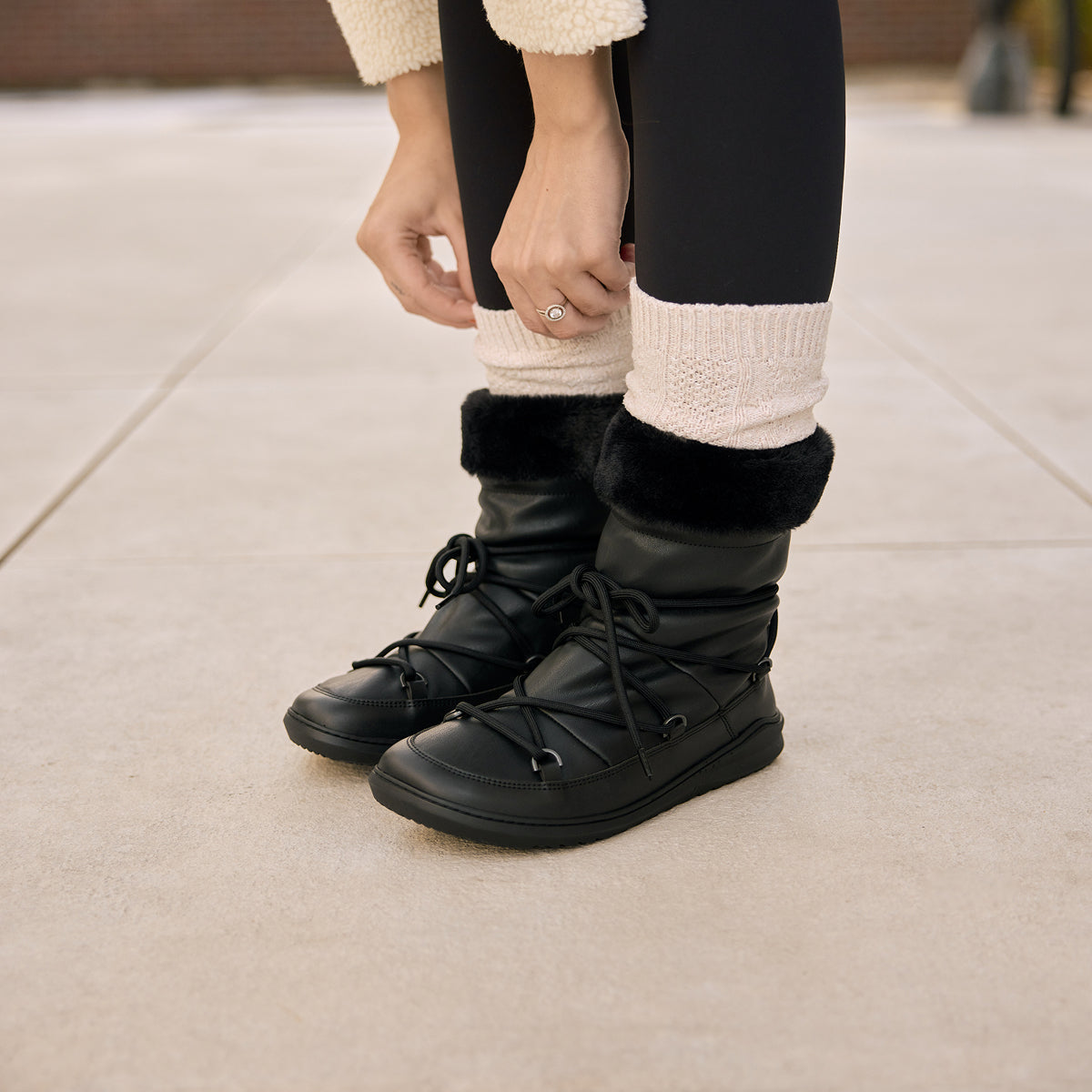 Nanook, benannt nach dem Inuit-Wort für „Bär“, sind moderne Winterstiefel, die für stilvolles Erlebnis an kälteren Tagen entworfen wurden. Das Obermaterial aus synthetischem Leder mit wasserabweisender Beschichtung widersteht Feuchtigkeit, während das dichte synthetische Fell im Inneren für maximalen Wärmekomfort sorgt.