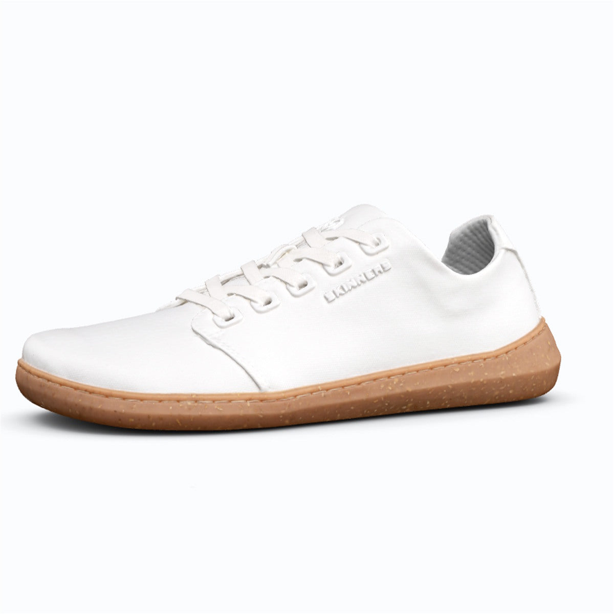 Der vegane Sneaker Wanderer ist wie geschaffen für ein gemächlicheres Tempo von Frühling bis Herbst. Das Obermaterial aus Baumwollgewebe hält die Füße trocken und sorgt für Komfort beim ganztägigen Tragen. Im Inneren des Schuhs befindet sich ein Futter aus Lyocell, einem weichen, innovativen Naturmaterial, das den Fuß natürlich atmen lässt und an kälteren Tagen auch wärmt. Der leicht transparente Sohlenbereich enthält einen Zusatz aus Reisschalen. Wanderer verbindet einen frischen Stil mit den typischen Vorteilen von Barfußschuhen wie flexiblen Materialien, einer breiten Zehenkappe und einem Null-Absatz. So bietet er maximalen Komfort in minimalistischem Design.