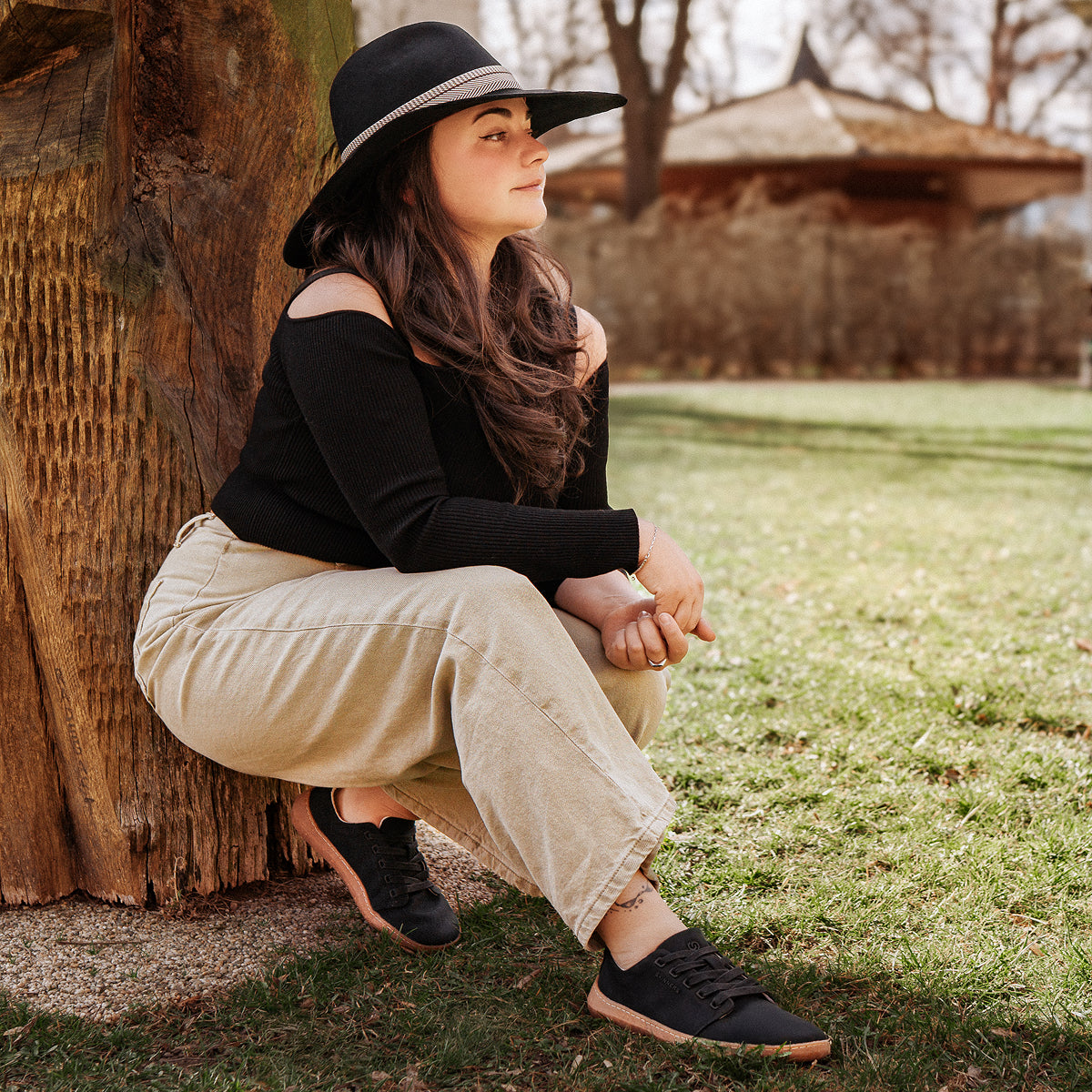 Der vegane Sneaker Wanderer ist wie geschaffen für ein gemächlicheres Tempo von Frühling bis Herbst. Das Obermaterial aus Baumwollgewebe hält die Füße trocken und sorgt für Komfort beim ganztägigen Tragen. Im Inneren des Schuhs befindet sich ein Futter aus Lyocell, einem weichen, innovativen Naturmaterial, das den Fuß natürlich atmen lässt und an kälteren Tagen auch wärmt. Der leicht transparente Sohlenbereich enthält einen Zusatz aus Reisschalen. Wanderer verbindet einen frischen Stil mit den typischen Vorteilen von Barfußschuhen wie flexiblen Materialien, einer breiten Zehenkappe und einem Null-Absatz. So bietet er maximalen Komfort in minimalistischem Design.